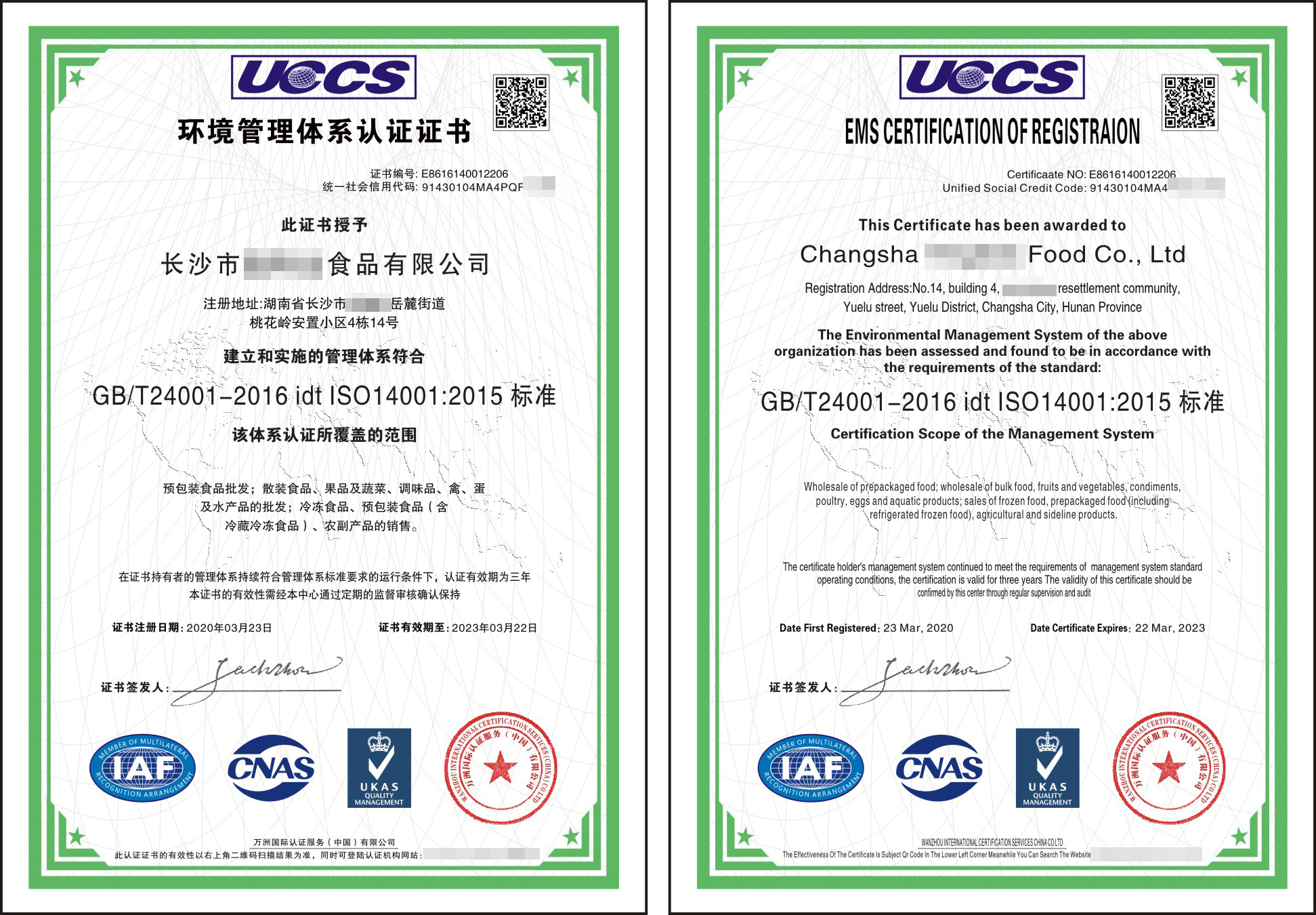环境管理体系认证证书