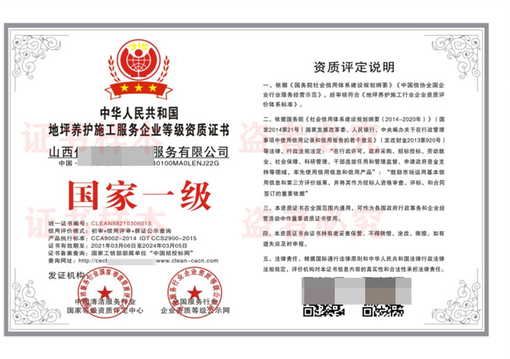 地坪养护施工服务企业等级资质