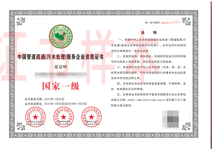 市政环境(垃圾分类清洁)清洁维护服务专业资质评价证书