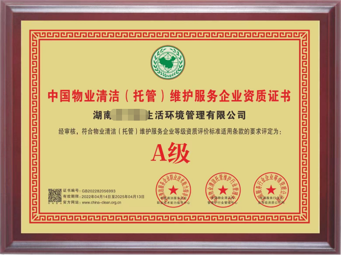 物业清洁(托管)维护服务企业专业资质评价证书