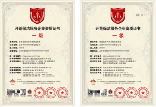 市政环境(垃圾分类清洁)清洁维护服务专业资质评价证书
