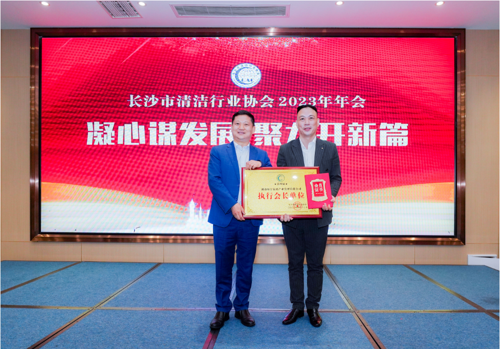 2023年4月12日(周三)13: 00在湖南省长沙市雨花区中意一路 798 号长沙高升华美达酒店一楼香合厅召开了长沙市清洁行业协会第四届换届大会暨 2023 年年会我们湖南环宇家政产业管理有限公司被选为执行会长单位。与此同时我们公司董事长龚荣春先生荣升为长沙清洁行业协会执行会长!