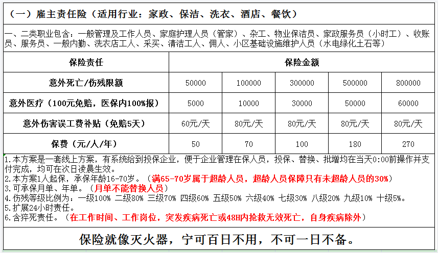 保险就像灭火器,宁可百日不用,不可一日不备。当用工风险来临时,唯有保险才是企业老板的护身符。联系电话:19173194637/王老师(微信同号)