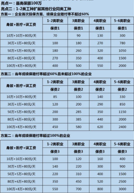 亮点4:1-2类职业超龄人员(65-70岁)原保费180元基础上线下批增360元,保障扩充为每人意外身故/伤残保额50万,意外医疗保额5万,误工费80元/天(猝死责任保障为70%)