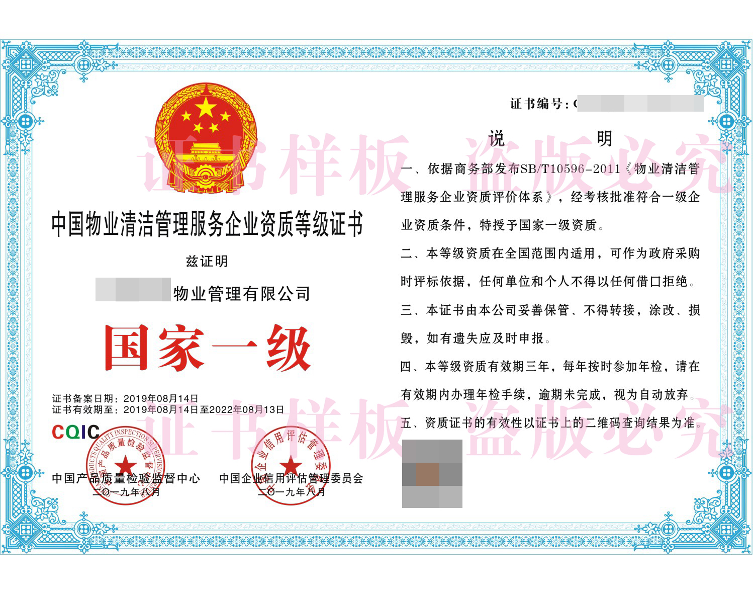 市政环境(垃圾分类清洁)清洁维护服务专业资质评价证书