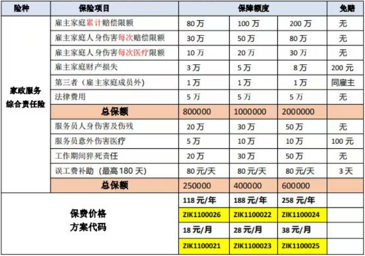 以下是家政行业雇主责任险方案: